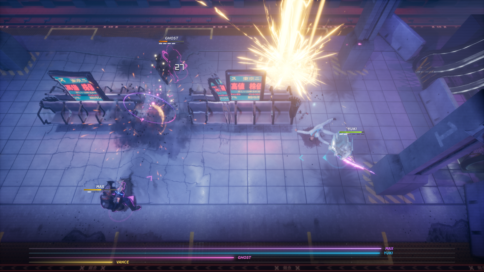 Your 4 character choices are: Max (The Hunter), Ghost (The Nightmare), Yuki (The Lantern), and Vance (the Fixer). The only differences between these four are what they look like and the taunts they have, which vary in what they say and their voices of course. Taunts are unlocked progressively as you play more, and are a fun way to celebrate defeating an opponent at the end of each round.